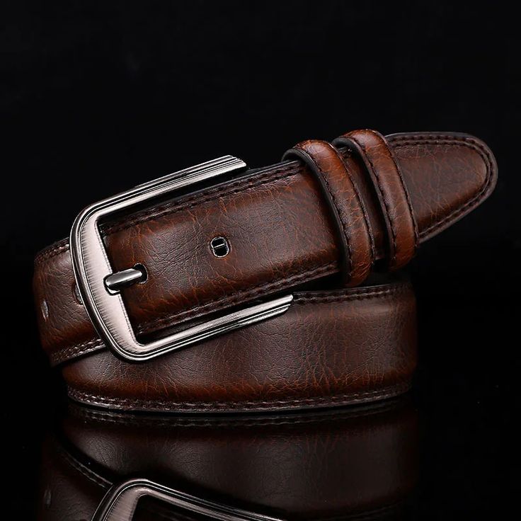 Men Genuine Leather Belt Pin Buckle Casual Trendy Brown Suitable Middle aged Young Men